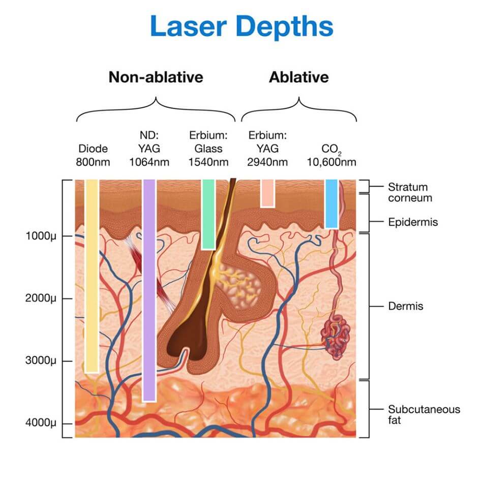 Figure 1: Laser resurfacing depths — ablative vs fractional — a visual guide to skin rejuvenation with lasers.